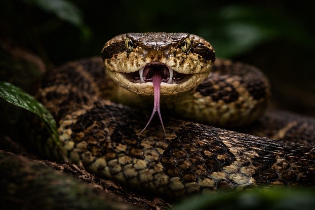 Fer-de-Lance Snake, with its speed, aggression, and potent venom, the fer-de-lance is one of the deadliest snakes in the Amazon. A bite from this dangerous serpent can cause severe internal bleeding and shock, and in the remote jungle, immediate medical help may be impossible. The fer-de-lance attacks with little warning, and its deadly venom will quickly take its toll on your body, leaving you with little chance of survival if not treated immediately.