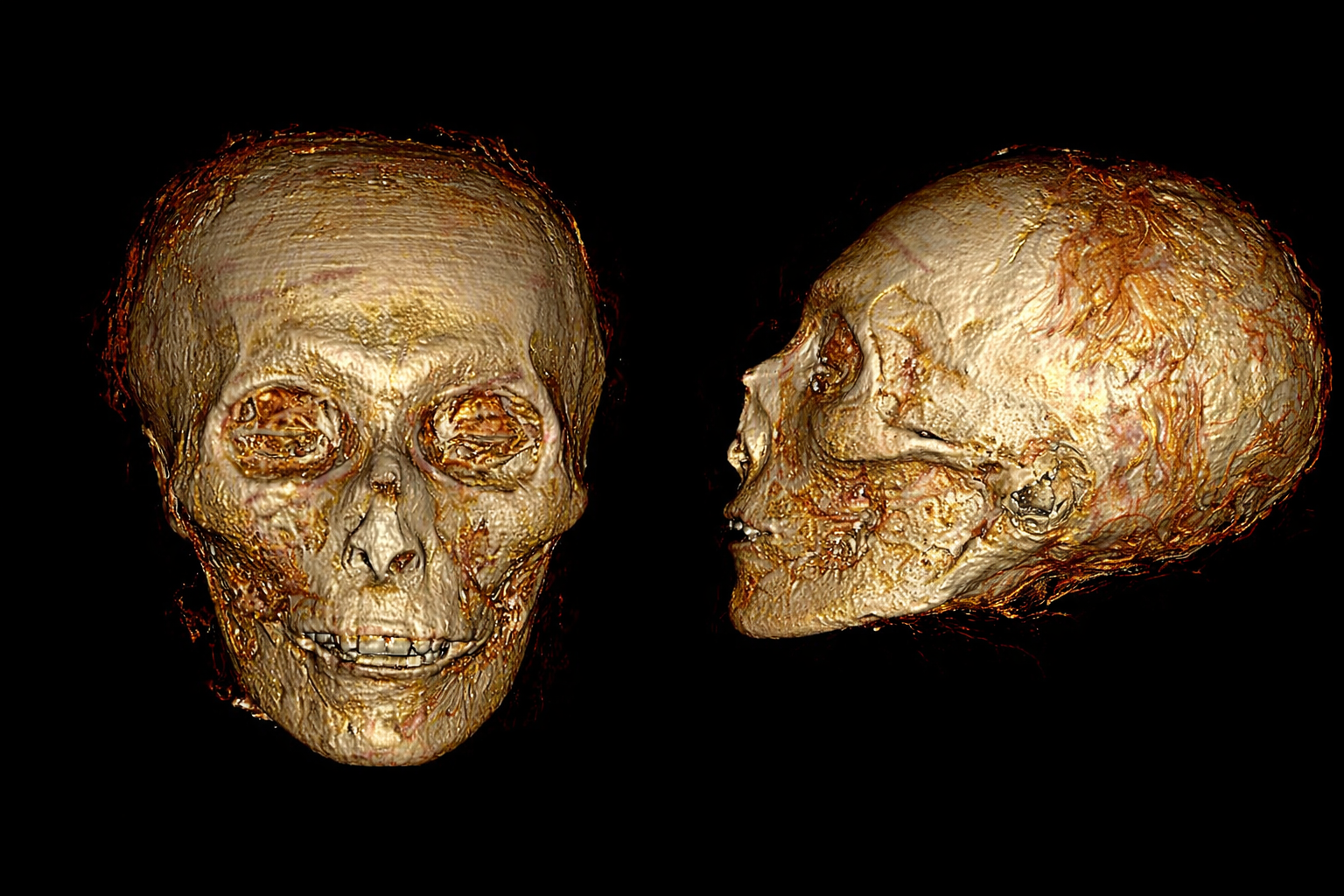 Unlike the stylized masks seen in tomb art, the CT scan exposed a more intimate truth. His nose was narrow, lips full, and cheeks softly defined, with features more human than divine. He didn’t resemble the idealized kings of monuments, but a real young man whose reign was abruptly paused. Seeing his face reanimated through imaging creates an uncanny bridge between eras, proof that even through millennia, identity can persist when preserved with reverence and science.