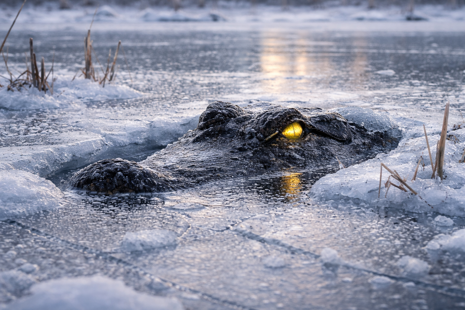They aren’t feeding or moving much during this time, conserving energy and waiting it out. It’s not elegant, but it’s effective. They use their own bodies as ice-breaking devices, and the image of an alligator frozen in place with its nose poking out has become a surreal testament to cold-blooded resilience.