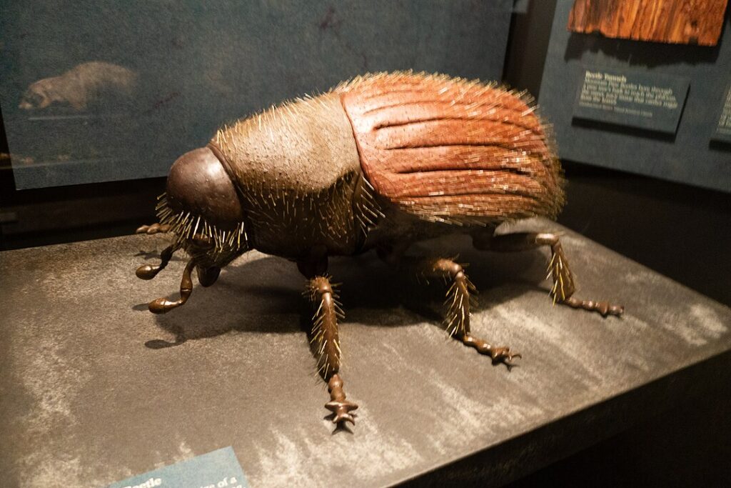 Mountain pine beetles are native insects that historically played a limited ecological role. Warmer winters now reduce cold related mortality, allowing massive numbers to survive and reproduce. Longer summers enable additional breeding cycles in a single season.