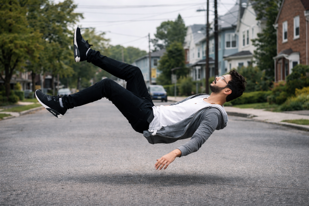 ©Image PetsnPals/ChatGPT, illustration of guy defying gravity