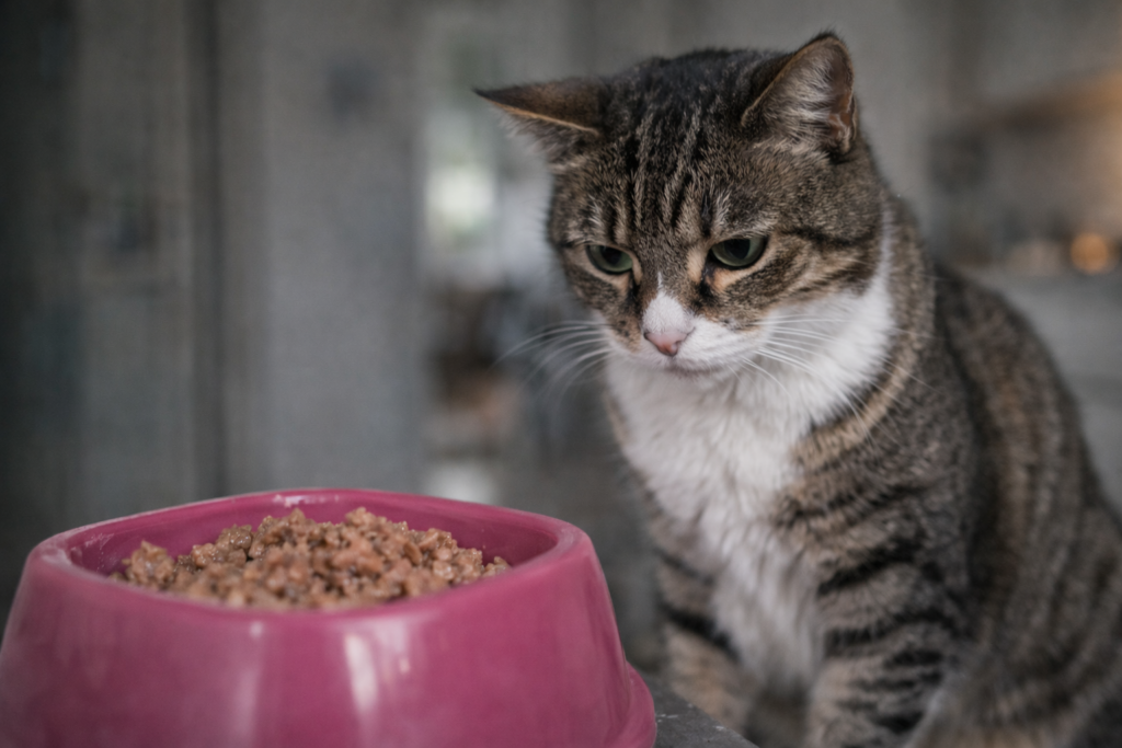 Cats prefer eating in calm, predictable spaces. Noise, foot traffic, nearby litter boxes, or new feeding locations can quietly undermine appetite. The food itself has not changed, but the context has.