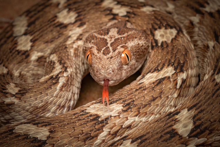 The saw-scaled viper is not large, but it is highly reactive. When threatened, it coils tightly and produces a rasping sound by rubbing its scales together. This warning is often too subtle or brief to register before a strike occurs. Once engaged, the snake may deliver multiple bites in rapid succession.