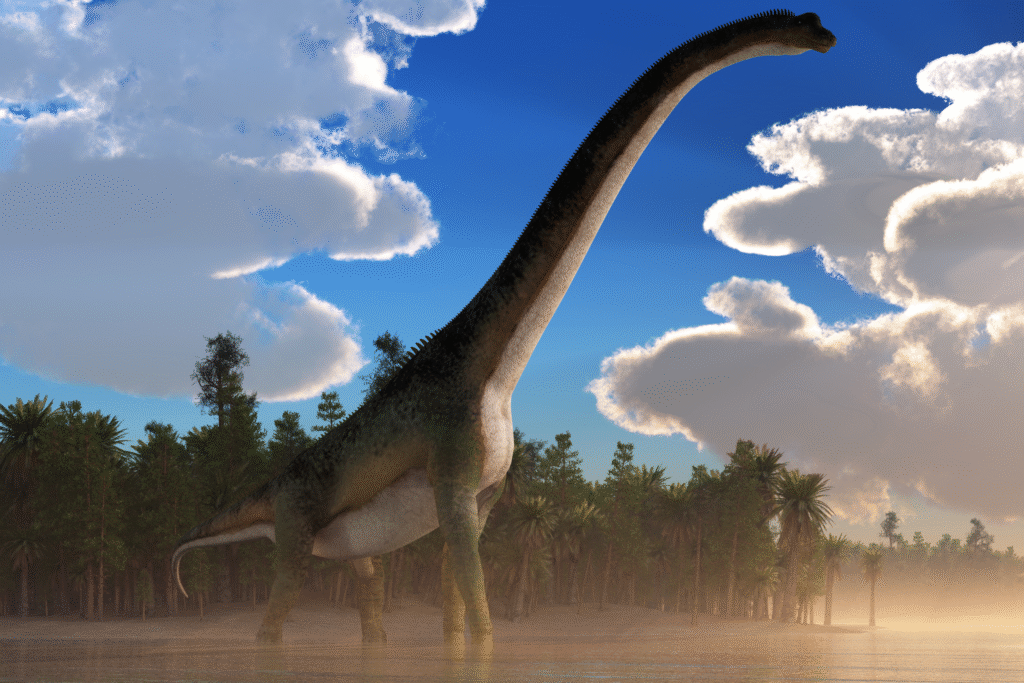 Not far from the predator’s path, massive round footprints etched by Sauroposeidon reveal the movement of a plant-eating giant, as stated by CNN. Unlike the sharp and pointed claw marks of Acrocanthosaurus, these impressions are wide, almost bowl-shaped, pressed into the limestone by sheer weight.