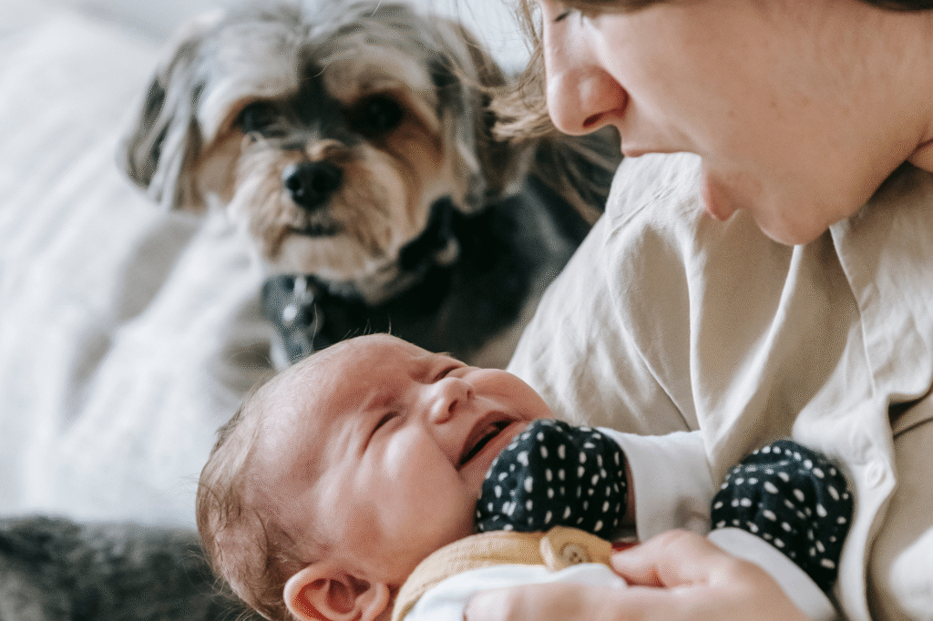 In many dogs, baby cries awaken an innate urge to protect the most fragile member of their “pack.” This reaction can look like hovering near the crib, sleeping outside the nursery door, or barking at perceived threats.