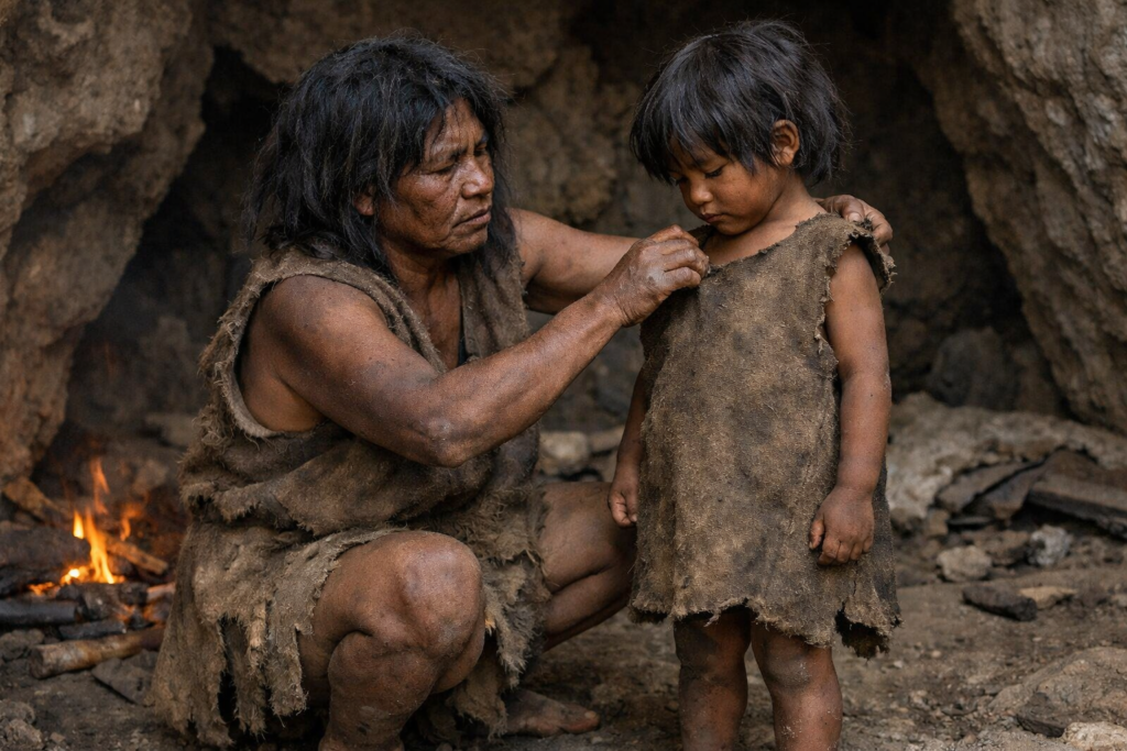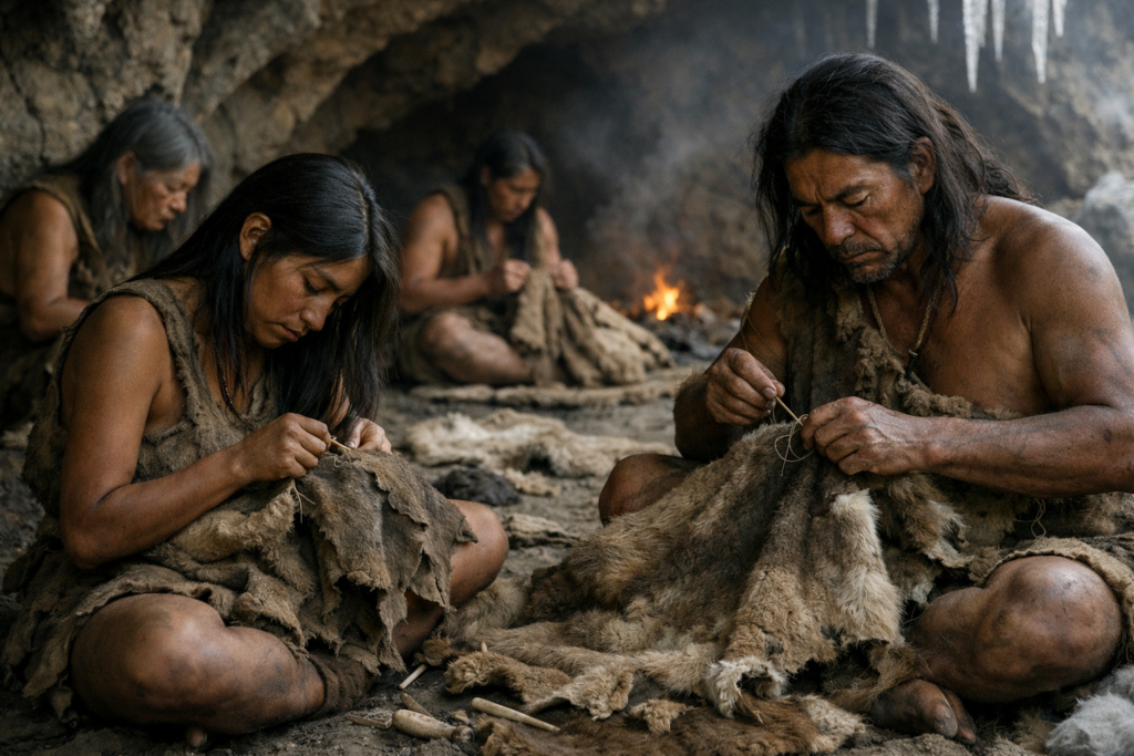 Tailored clothing would have provided insulation during cold spells and mobility during seasonal movement. The garments suggest resilience during a period of environmental instability rather than primitive survival.