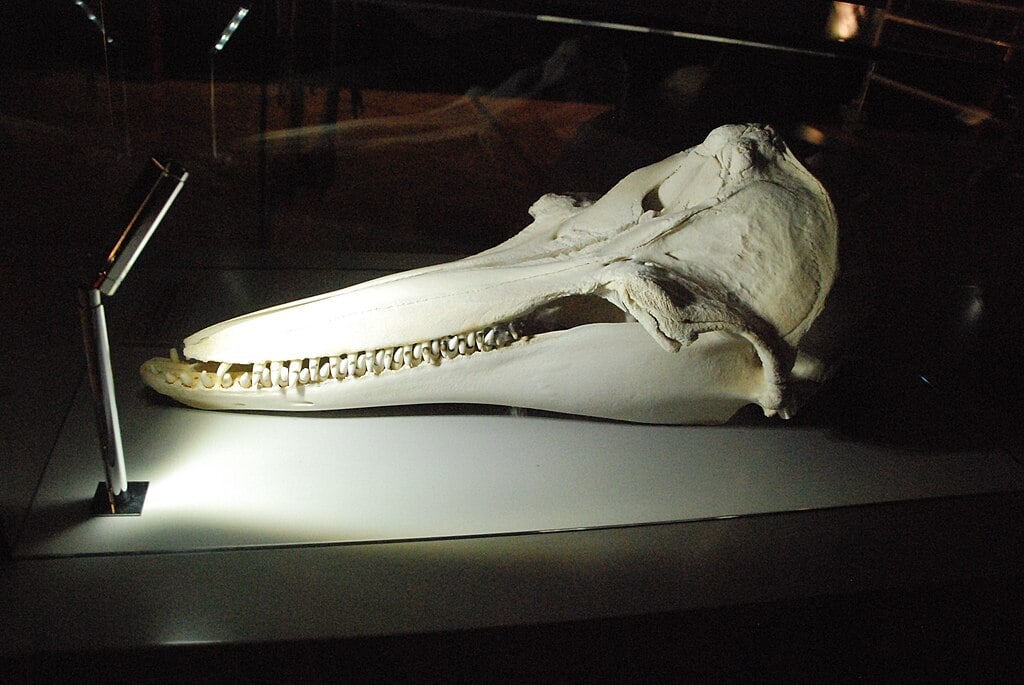 Those crests connect it to modern echolocating river dolphins, reinforcing functional similarities despite different lineages. The design suggests strong sensory adaptation to a life in low-visibility water.