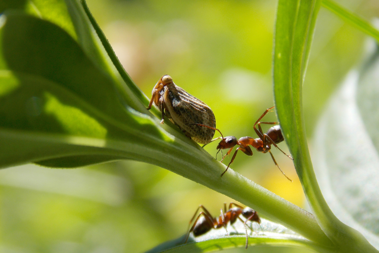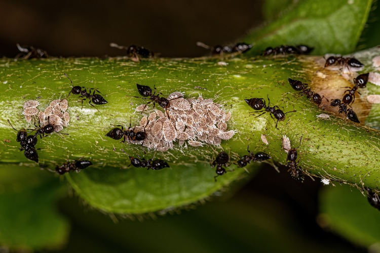 2. Some ants transport mealybugs between roots with careful purpose.