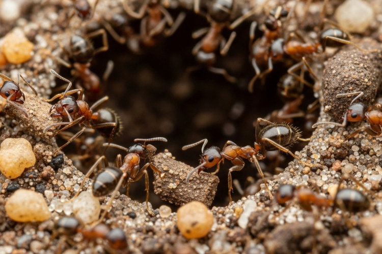 When cold or drought threatens survival, workers gather their insect partners and carry them underground where humidity and temperature stay stable. These movements happen quickly, sometimes within hours of environmental shifts. The soil chambers protect insects while giving ants consistent access to honeydew.
