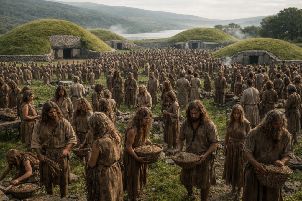©Image license via PetsnPals/ChatGPT, Neolithic Irish People in Newgrange