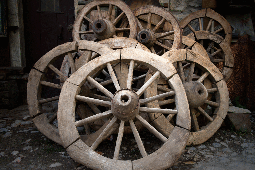 5. The wagon parts and horse gear show a culture of movement.
