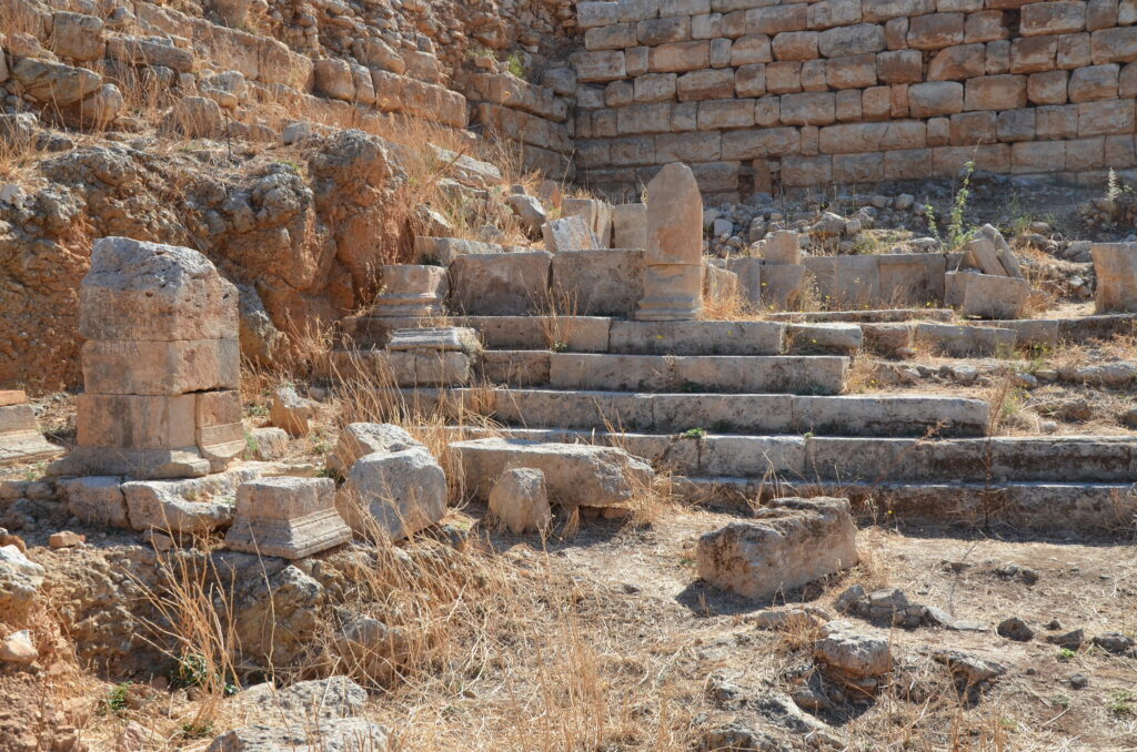 Aligned walls guide movement toward a central sacred zone. Column drums and dressed blocks suggest a monumental façade visible from a distance. According to the Greek Ministry of Culture, the layout closely matches known Apollo sanctuaries from the Hellenistic period, supporting the conclusion that this was a formally planned religious complex rather than a local shrine.