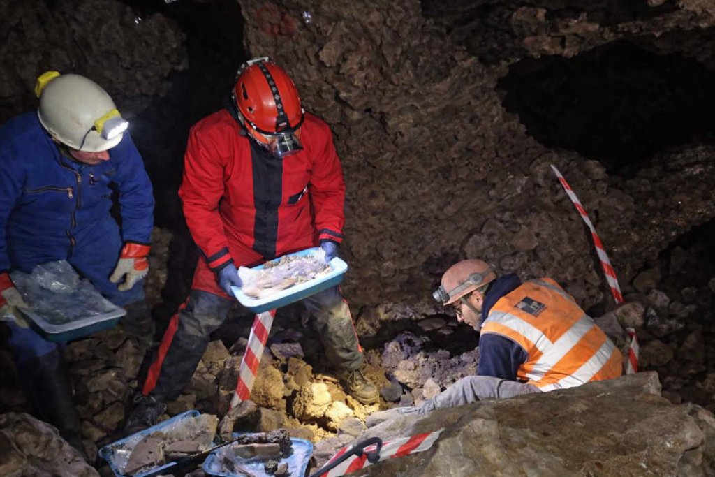 As the cave was stabilized, bones appeared in dense concentrations across the sediment. They were layered rather than scattered, suggesting repeated deposition rather than a single event. The sheer volume quickly ruled out a lone animal or recent intrusion.