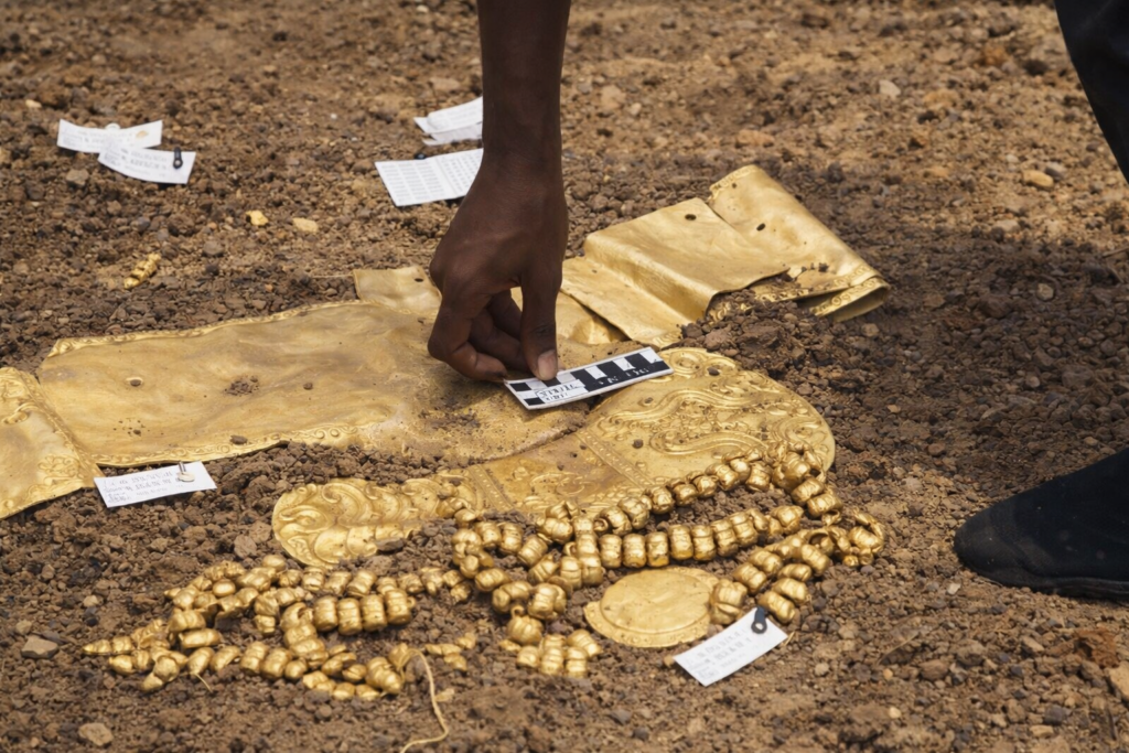 The central burial occupies the deepest and most protected position within the tomb, a placement that signals exceptional status rather than coincidence. The individual was adorned with elaborate gold regalia including chest plates, bracelets, and pendants that required advanced metallurgical knowledge and coordinated labor. These items were not merely decorative. They functioned as visible markers of authority that would have been recognized across multiple communities.