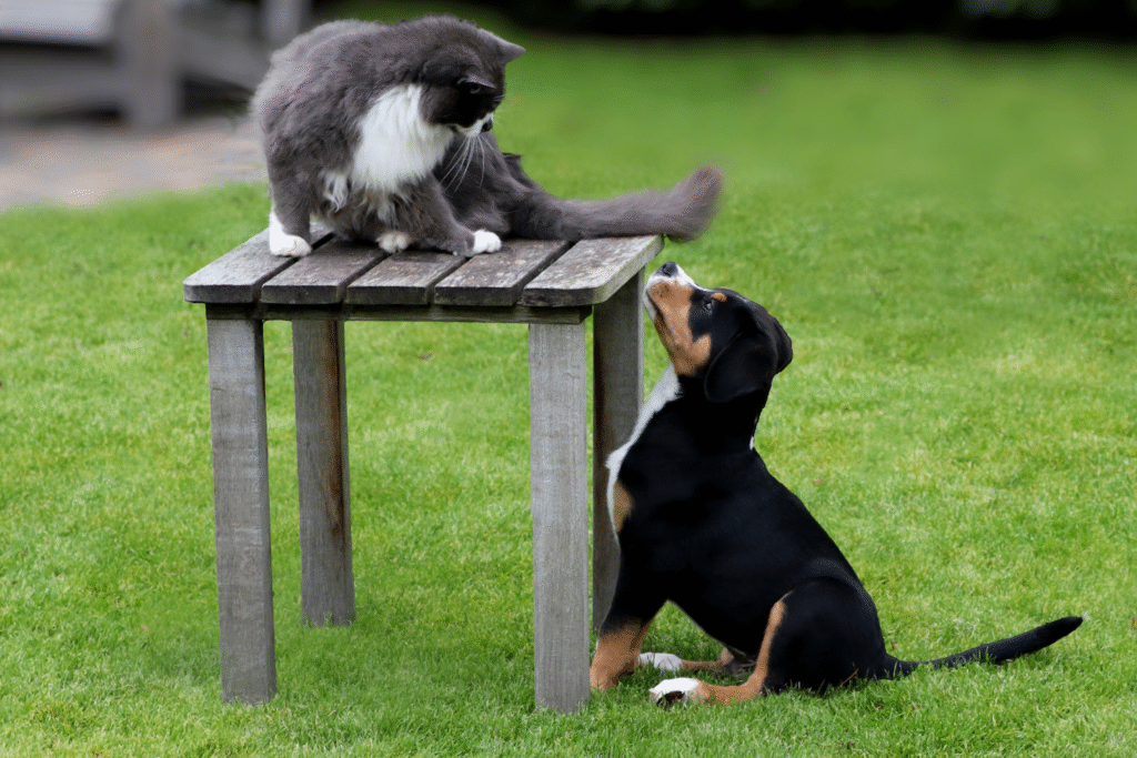 If your cat and dog need a break from each other, set up designated “no-dog zones” for your cat and a cozy corner for your dog. It’s like giving them their own personal man-caves—no barking, no hissing, just peace and quiet. When both pets know they have a retreat, they’re less likely to compete for space or attention.