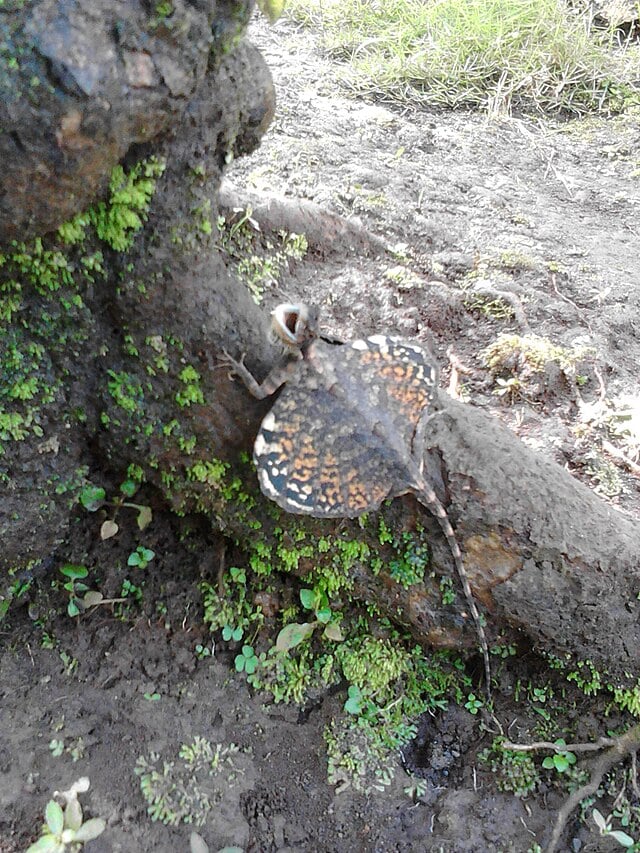 Male Draco lizards display colorful throat fans called dewlaps during territorial or courtship interactions. These displays appear dramatic but rarely escalate into physical conflict. As reported by the Smithsonian Magazine, color patterns vary by species and location.