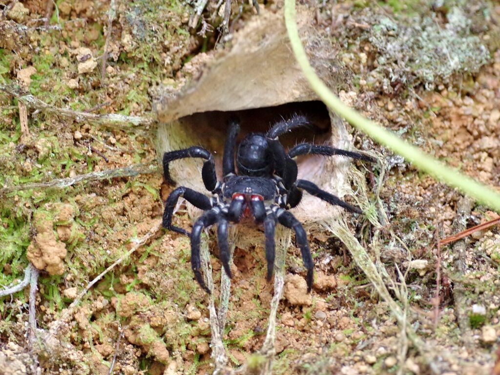 4. The spider constructs burrows with camouflaged silk-lined trap doors.