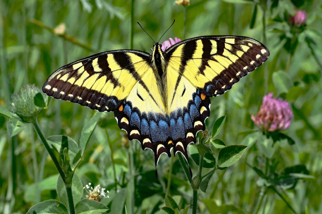 6. The tiger swallowtail butterfly flashes its oversized stripes.