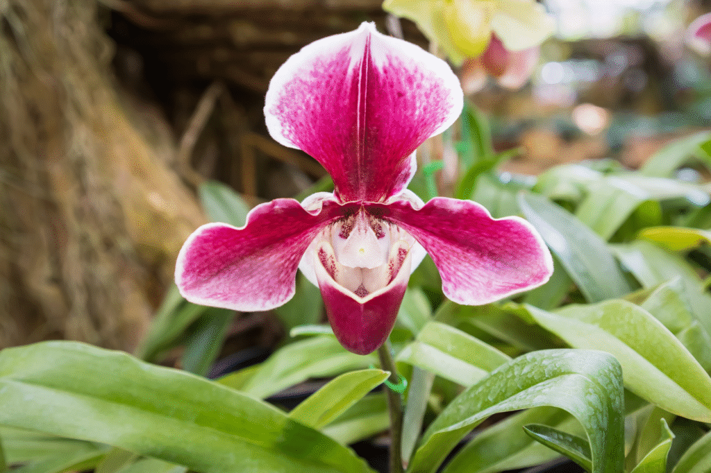 3. The pink lady’s slipper orchid wears shocking colors in plain sight.