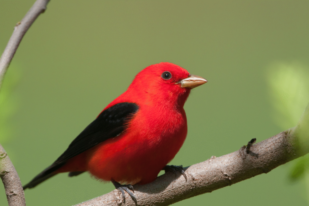 Males of this species sport bright red feathers paired with jet-black wings during breeding season, making them look like living sparks in the trees. Outside of breeding, they fade into olive tones, but in spring, they’re shockingly easy to spot compared to other canopy birds. Their bold look is mostly about impressing mates rather than avoiding predators, a high-risk strategy that clearly works given their continued success in the Smokies.