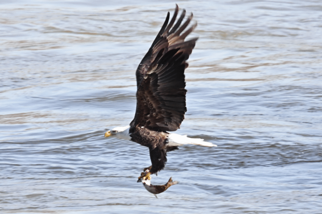 It doesn’t happen often, but when a bald eagle catches a fish too heavy to fly away with, it will sometimes swim to shore using a breaststroke motion with its wings. It looks awkward, desperate, and deeply uncoordinated, but it works. For a raptor, it’s an embarrassing but practical move. The worst part is how long they’ll commit to the bit. They’ll drag the catch across the water for minutes if that’s what it takes.