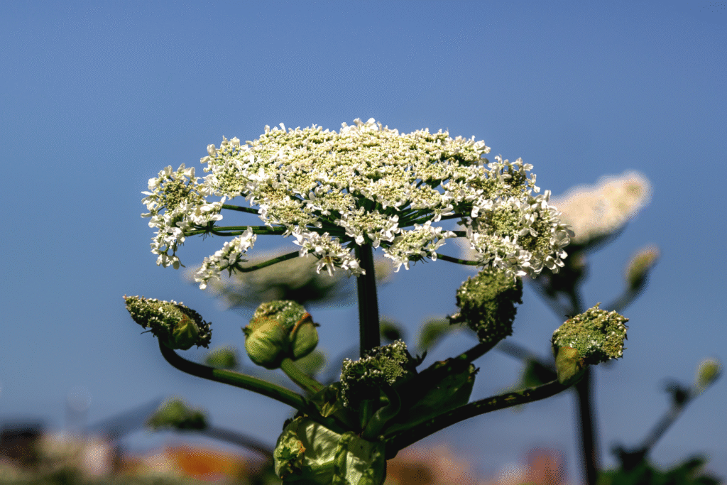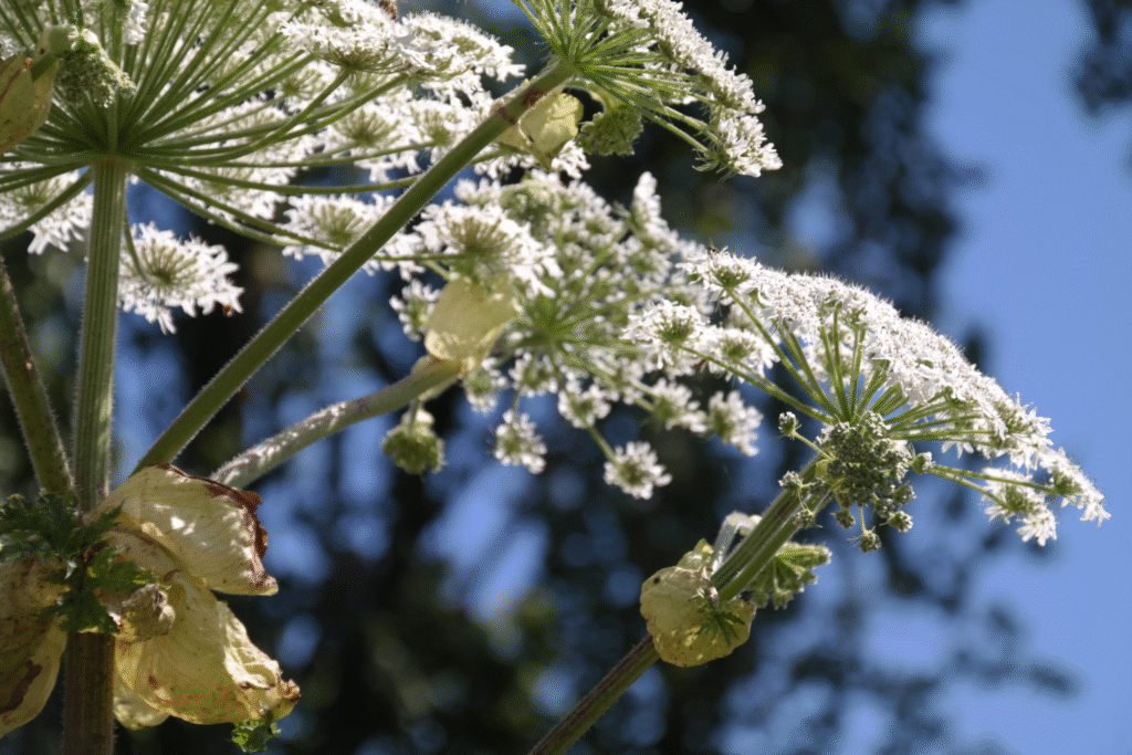 From a distance, giant hogweed appears almost magical—white blossoms towering like parasols against the sky. Up close, it tells a different story: burns, scars, blindness, and invasive conquest. Its beauty is real, but so is the destruction it leaves behind.