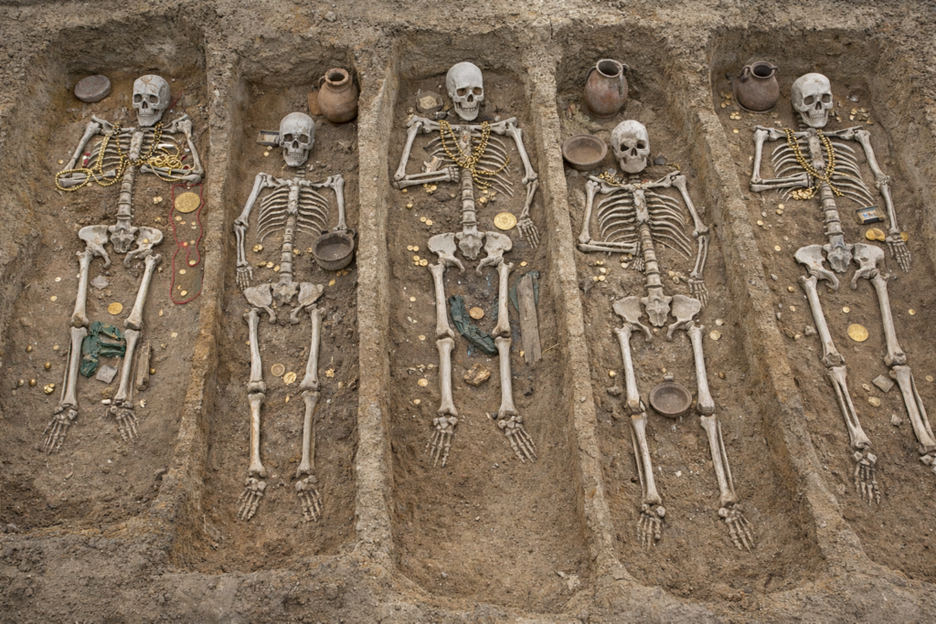 Graves at Varna are arranged in organized rows rather than scattered randomly. Spatial patterns reveal differentiation between richly furnished burials and simpler interments.