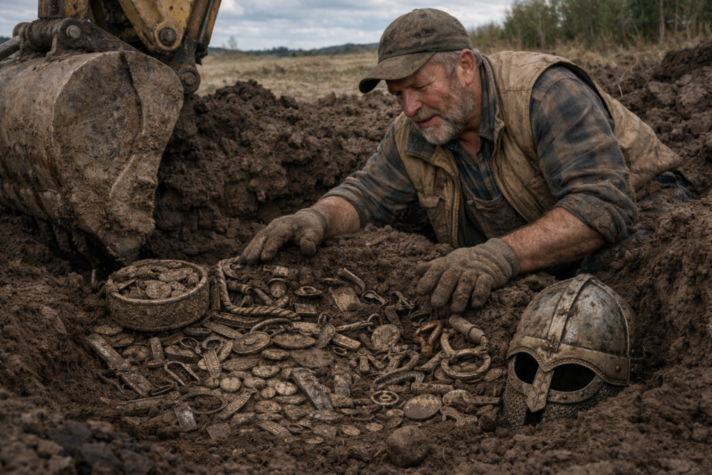 Closer inspection revealed worked metal rather than scrap. Its position suggested placement, not loss. That distinction mattered. In Norway, deliberate burial carries legal and cultural weight. What lay beneath was no longer the farmer’s problem alone.