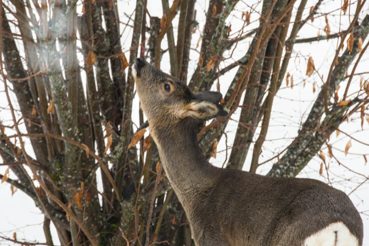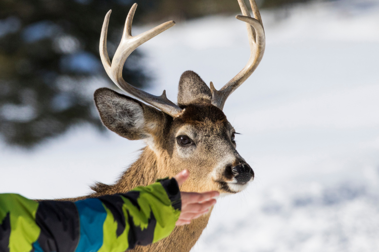 Repeated feeding conditions deer to associate people with food. Animals linger near houses, roads, and schools instead of foraging naturally. When feeding stops abruptly, these deer lack experience locating winter browse, increasing starvation risk late in the season each year.