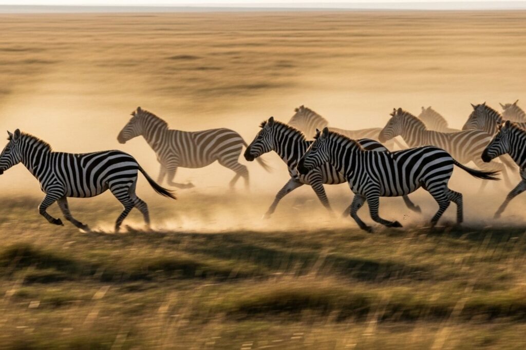 When zebras break into a sprint, the pattern causes a flickering effect that makes their outlines jitter and warp. Predators relying on steady silhouettes find their target suddenly unstable. This visual distortion becomes even more dramatic in dust or shifting shadows, turning the chase into a sensory challenge.